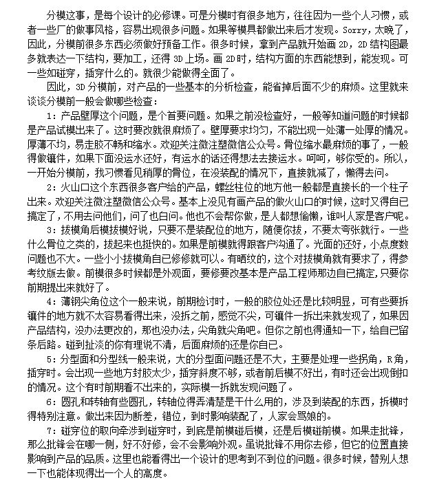 3D分模时应注意的东西